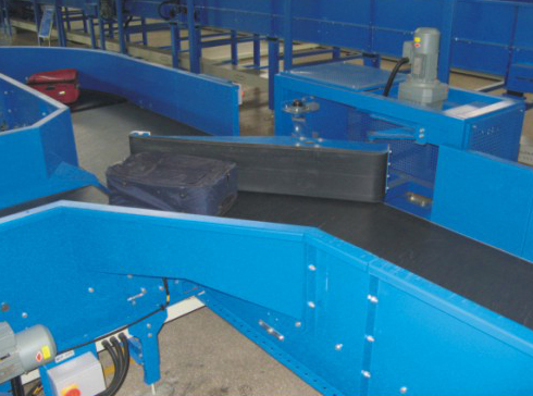 分流器通常被用于行李處理,安檢及行李分揀系統(tǒng)中,使單個的行李單元從輸送線上或轉盤上分流到鄰近的輸送線或分揀滑道中去。